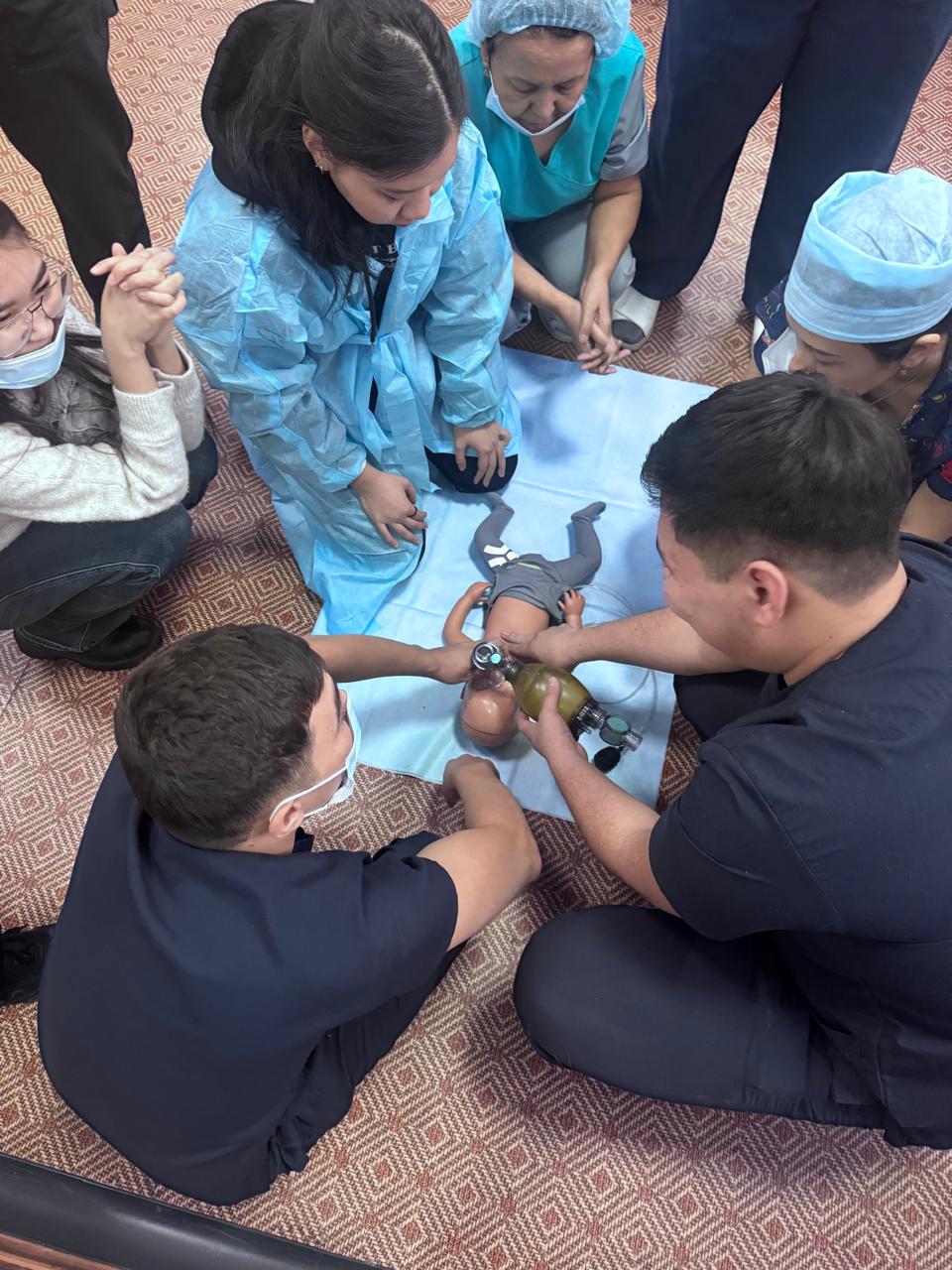Первое занятие проводится с медицинским персоналом приёмного отделения ДГКИБ. Тренинг ведёт сертифицированный инструктор — врач-анестезиолог-реаниматолог высшей категории Кенембаева Алия Гауазовна, прошедшая специализированное обучение в Германии и городе Астане.
